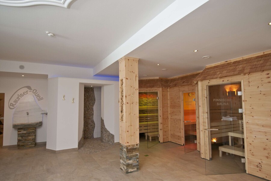 Nach der Wärme warten belebende Duschen, frisches Quellwasser vom Rauriser Steinbrunnen und ein Ruheraum mit Wasserbett und Liegen auf dich.