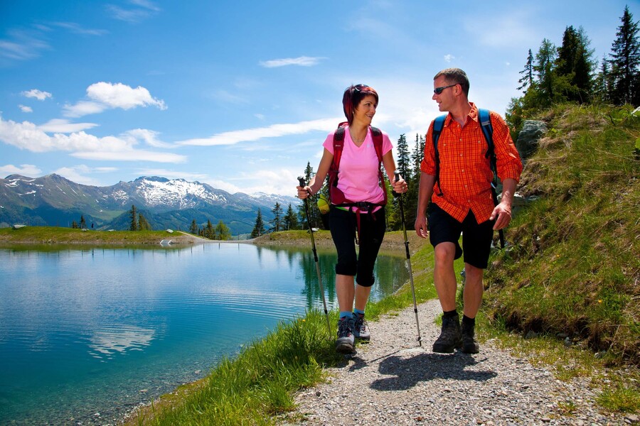 Direkt vor der Hoteltür beginnen 295 Kilometer markierte Wanderwege & Alpinsteige, viele davon als Themenwege gestaltet - mit Geschichten über Adler, Gold, Wasser und Wald. Ob du gemütlich unterwegs bist oder den Gipfel suchst: Hier findest du deine perfekte Route.